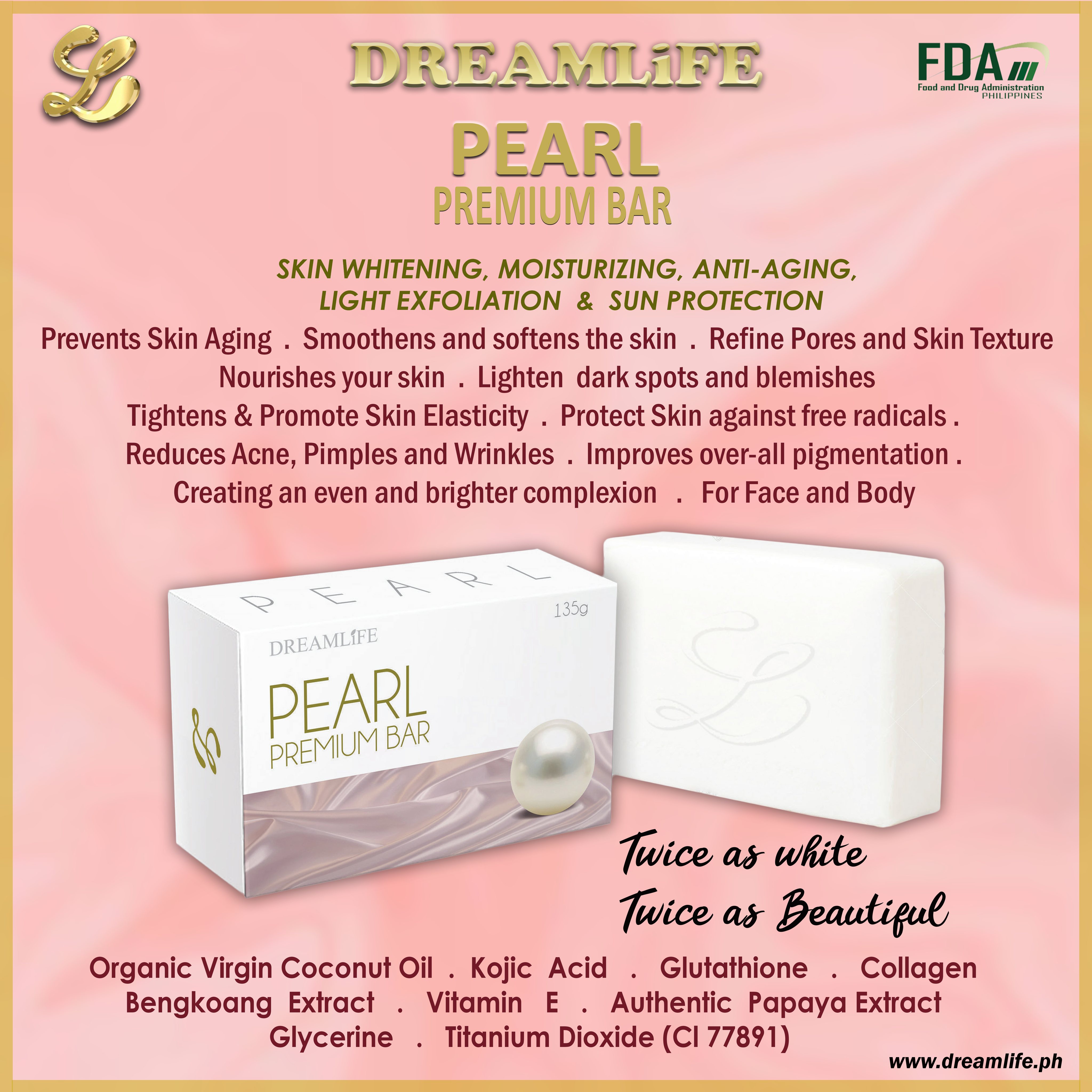 Twice as white Twice as Beautiful. Move one step closer to skin perfection with the powerful cobination of Gluthathione, Kojic Acid and Collagen in the new Pearl Premium Bar. MAde with Natural ingredients, FDA Aprroved.